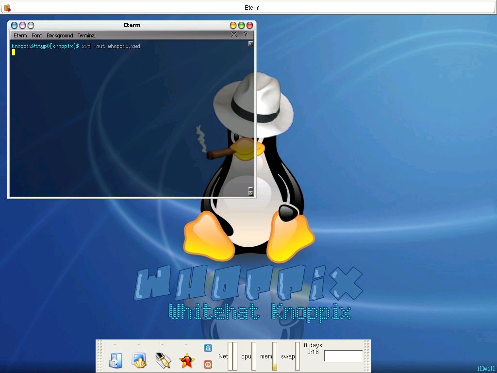 我们不是唯一一个为此挣扎的人。在2004年,一名专业安全从业者,也是一名黑客的 Mati Aharoni(Muts)发布了一个名为 “WHoppiX”(白帽 Knoppix)的 Live CD,被称为“终级渗透测试 Live CD”。它包含了SecurityFocus,、Packet Storm and k-otik、Metasploit framework 2.2 等在内的所有漏洞利用程式以及更多的东西。