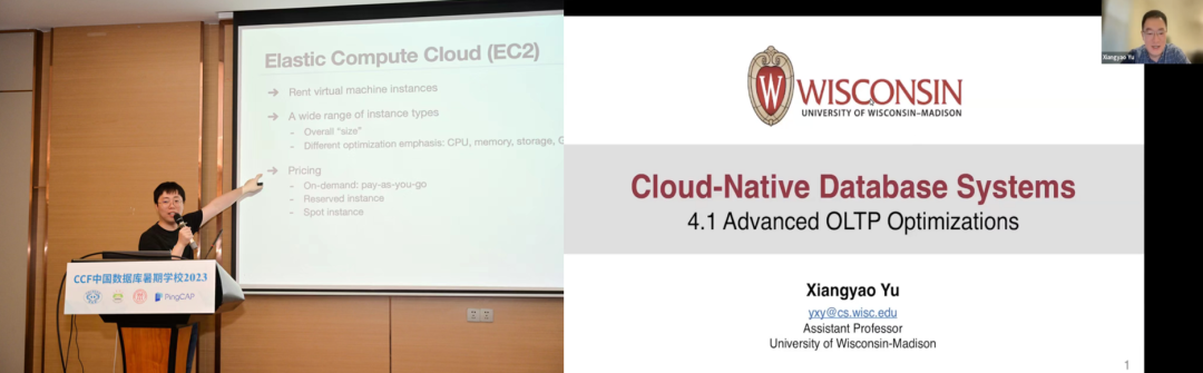7 月 21 日,2023 年度中国数据库学院暑期学校在福建省龙岩市万华皇冠大酒店凯旋厅隆重举行开班仪式。出席开班仪式的嘉宾有:暑期学校校长、中国人民大学杜小勇教授,中国计算机学会数据库专委会常务委员、中国人民大学信息学院党委书记陈红教授,龙岩学院校党委副书记朱闽,龙岩学院数学与信息工程学院院长赖永炫,副院长谢锦山,以及来自北京大学、清华大学、东北大学、山东大学、华中科技大学、西北工业大学、中国人民大学等 20 余所高校的 117 名学员。开班仪式由龙岩学院数学与信息工程学院院长赖永炫主持。开班仪式上,首先由龙岩学院校党委副书记朱闽致辞。他表示龙岩学院作为本届暑期学校的承办方,将以最高的热情、最好的服务、最优的条件,为嘉宾学员提供一个舒适、安全、便捷的学习交流环境。同时也希望借此机会,与各位专家、学者、同学们加强沟通合作,共享资源平台,共谋发展大计,共创美好未来。随后,暑期学校校长杜小勇教授介绍了数据库暑期学校的发展历史及办学初衷,并从学习和实践等方面对同学们提出要求,希望同学们认真学习,相互交流,祝愿同学们能充分利用此次机会,努力提升自己,未来为推动中国数据库事业的发展贡献力量。开班仪式结束,在场的全体同学与与会嘉宾共同合影留念。为期 6 天的学习紧紧围绕 2023 年度数据库学院暑期学校的主题“CLOUD DB 云数据库”展开,此次的暑期学校授课方式延用 2021 年度变革的理论+实践的方式进行,理论授课部分安排在上午,组委会邀请了在云数据库方面有丰富科研和教学经验的数据库专家担任主讲教授:清华大学姚班助理教授张焕晨博士和威斯康辛大学的于向遥教授。他们分别就云基础知识、带存储分解的 OLTP、单写节点、多写入器节点、DBaaS 等前沿问题进行了深入浅出的讲解;下午的实践环节,组委会邀请了 PingCAP 公司的技术专家为学员们展示实操部分的授课演示,此次工程实践共设计了四个具体的实训任务,技术专家在实训过程中给予了细心和耐心的指导,帮助学员们深入了解云数据库技术的应用与实践,促进数据库领域的知识分享与学术进步。