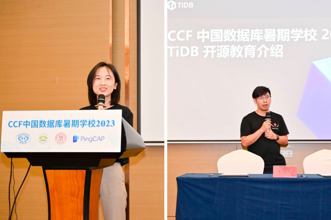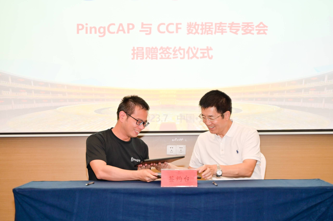 7 月 23 号的大师分享环节,来自微软雷德蒙研究院数据系统小组的成员 Phil Bernstein、PingCAP 联合创始人兼 CTO 黄东旭、以及阿里巴巴集团的副总裁李飞飞、亚马逊 AWS 副总裁 Ippokratis Pandis 分别作题为《Using Spot VMs for a Remote Cache》、《走向云和智能,从 TiDB 的演进看全球开源数据库技术应用趋势》、《PolarDB: 构建下一代云原生一站式数据管理与服务的关键挑战和技术》、《Amazon Redshift re-invented: 10 years of innovation》的特邀主题报告。参加的嘉宾(包括众多 CCF 数据库专委、常委)和学员深入交流,共同探讨数据系统领域的最新动态。活动当天,PingCAP 公司和 CCF 数据库专委签署捐赠协议。为了更好的支持中国数据库人才培养,持续赋能中国数据库行业,践行 PingCAP 对数据库人才的长期主义,PingCAP 向中国计算机学会数据库专委会捐赠 2021 - 2023 三年合作暑期学校工程实践的全部实验,和中国数据库一同成长。CCF 数据库专委主任李战怀教授和 PingCAP 唐刘签署协议。之后唐刘进行《TiDB 研发工程实践及 TiDB 人才观》的分享,向与会者介绍如何通过 TiDB 的研发体系工程实践将 TiDB 从需求打造为一款广受好评的开源分布式数据交付客户使用,中间需要经过非常复杂的工程实践和验证。人才是这一切的保障,以及 TiDB 对数据库人才的诉求和 PingCAP 实践。在 PingCAP 主题活动日环节,PingCAP 刘辰和陈小伟分别带来《TiDB 开源社区》、《TiDB 开源教育》的分享。