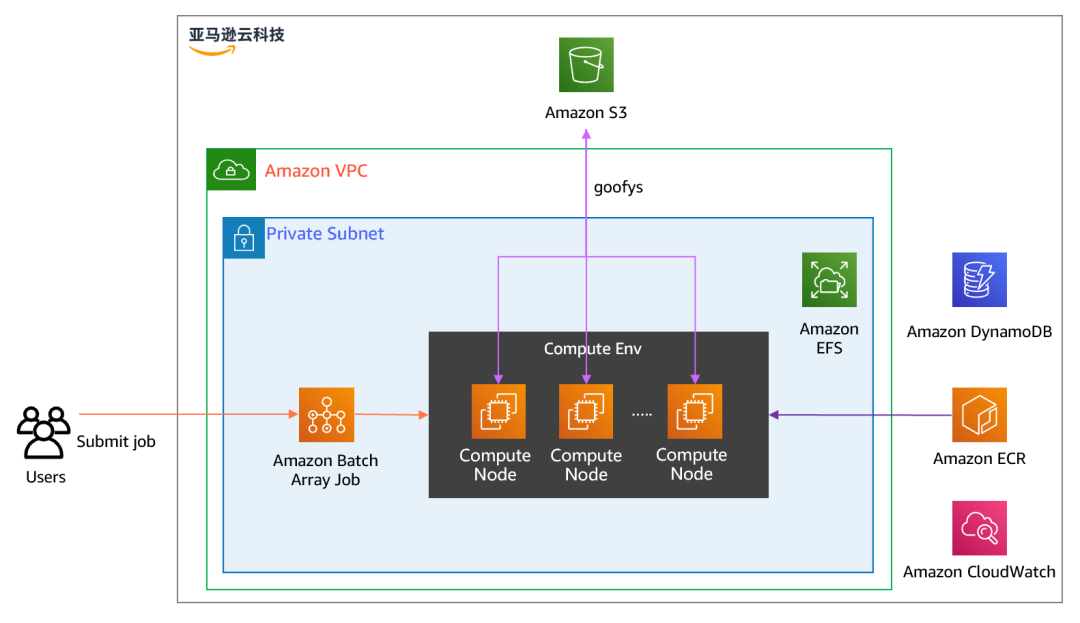 大规模微生物信息挖掘任务所使用的 HPC 涉及大量算力,如何让分布式算力得到妥善应用,需要对算力资源有良好而清晰的规划与安排。Amazon Batch 能根据提交的批处理作业的数量和特定资源要求,动态预置计算资源的最佳数量和类型,从而最大限度地提升计算效率和性能。即使科研团队需要同时运行数千个任务,同时启动大量的容器来处理,Amazon Batch 也能轻松调度。