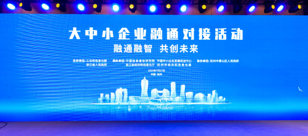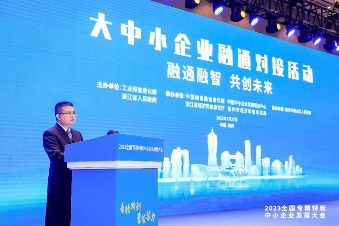 2023年7月27日,2023全国专精特新中小企业发展大会“大中小企业融通对接活动”在杭州国际博览中心举行。活动由工业和信息化部、浙江省人民政府主办,中国信息通信研究院(以下简称“中国信通院”)、中国中小企业发展促进中心、浙江省经济和信息化厅、杭州市经济和信息化局承办。