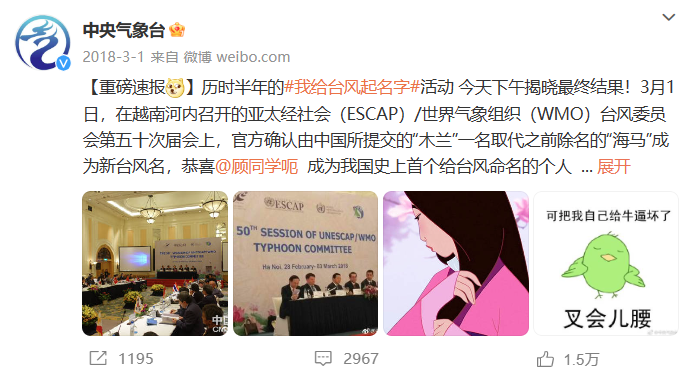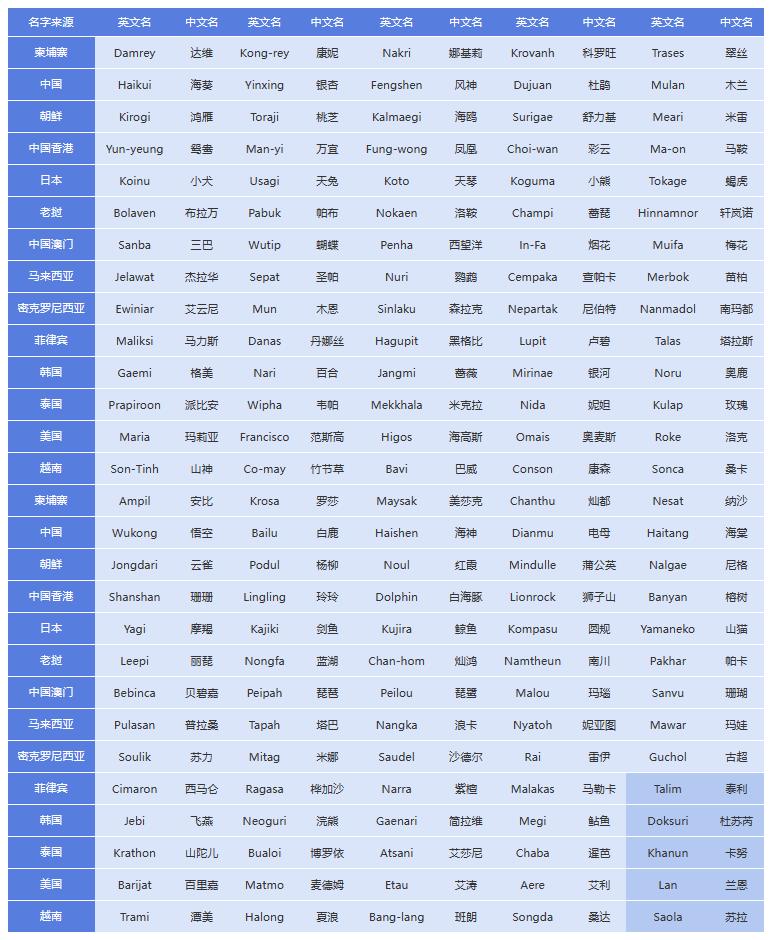 最近很火的台风“杜苏芮”的名字来自韩国,意义是一种猛禽,鹰。由于要循环使用这些名字,我们经常能听到之前的台风名字又重新出现。