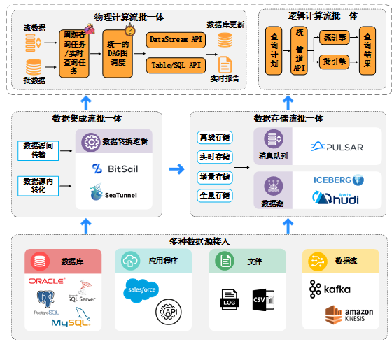 数据流批一体化的研究为实时数据流与历史批处理数据的协同处理提供了技术支持,并推动了大数据分析和应用领域的发展。通过综合利用实时数据流和批处理数据的优势,研究者们致力于开发新的算法和技术,以满足实时数据处理的需求,并提供准确、高效的数据分析和决策支持。此外,在实际应用中,实时数据流和历史批处理数据之间可能存在时间差、数据丢失和数据重复等问题,因此,研究者们还致力于解决数据一致性和完整性的问题,从而获得准确、全面的数据分析结果。