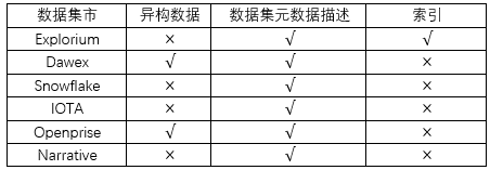 现有数据集市及其发展趋势:数据集市使政府或企业能够以新的方式访问数据,推动了数据经济的发展,让数据创造更多价值。一方面,通过数据交易可以直接获得收益,其中收益不必是金钱,还可以是数据或数据分析结果。另一方面,数据集市可以将数据管理中的一些任务外包给专门从事组装和管理数据集或以其他方式从数据中创造价值的第三方[11]。现有规模较大的数据集市如下表所示,其中第二列表示该数据集市是否支持异构数据的买卖;第三列表示集市是否存在元数据描述;最后一列表示该集市是否存在索引。根据Expert Market Research的数据,2020年全球大数据集市规模达到2080亿美元,预计将以10%的稳定复合年增长率增长,到2026年将达到4500亿美元。新的数据经济正在形成,数据可以以更简单、更实惠的方式创建、访问、租用和永久维护[12]。