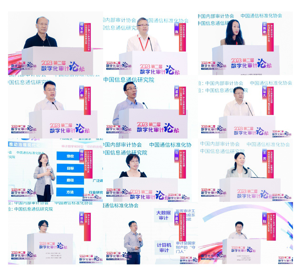 何宝宏分享了《内部审计赋能数字化转型十大关键词》;中国移动通信集团有限公司内审部总经理刘巍分享了《深入推进内审数智化转型,为加快建设世界一流示范企业保驾护航》;华润股份有限公司审计部总经理栾晓艳分享了《构建智慧审计平台,赋能华润集团内部审计数字化转型》;交通银行股份有限公司审计局副局长程广华分享了《数字时代内部审计能力建设》;三一集团有限公司副总裁、审计监察总部总监刘道君分享了《审计数智化转型探索与实践》;中国石油天然气集团有限公司审计部副总经理饶瑞久分享了《以数字化转型,驱动中国石油内部审计高质量发展》;中国信通院云计算与大数据研究所审计与治理部主任杨玲玲分享了《内部审计数字化标准体系及研究成果深度解读》;中国东方航空集团有限公司审计部副总经理、监督追责办公室副主任马丽分享了《信息化平台领航高质量内部审计》;南京钢铁联合有限公司党委副书记、纪委书记王芳分享了《基于数字化审计为核心的全域风控管理》;天津大学审计处处长高浩玮分享了《教育审计数字化为建设中国特色世界一流大学提供坚实保障》;北京中软国际信息技术有限公司企业应用服务集团副总裁李晨光分享了《数字审计的现代化发展,支撑内审对企业价值的保护》;中国信通院云计算与大数据研究所审计与治理部王阳分享了《内部审计数字化技术及能力成熟度评估观察》。