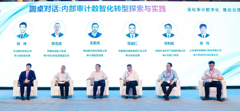 大会当天下午设置了圆桌对话环节,中信银行股份有限公司审计部副总经理王鹏虎、中国石油化工集团审计部计划信息室副主任陈雪嵩、中国石油天然气集团审计部部门专家郑利岩、中国移动通信集团江苏公司审计部总经理花俊仁、华润股份有限公司审计部高级经理陈博、上海浦东发展银行股份有限公司审计部信息科技处副处长陈鸣出席,围绕”内部审计数智化转型探索与实践”展开对话,众专家就内部审计数智化转型探索与实践议题进行了深入交流与思想碰撞。