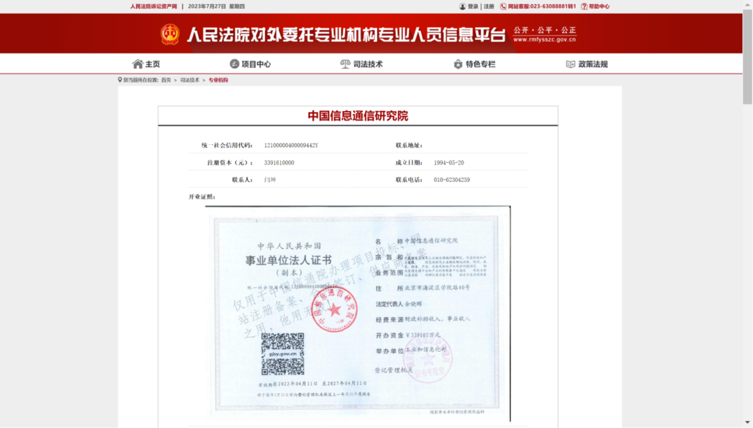 此外,中国信通院是最高人民法院认可的知识产权鉴定机构,具有知识产权鉴定资质。