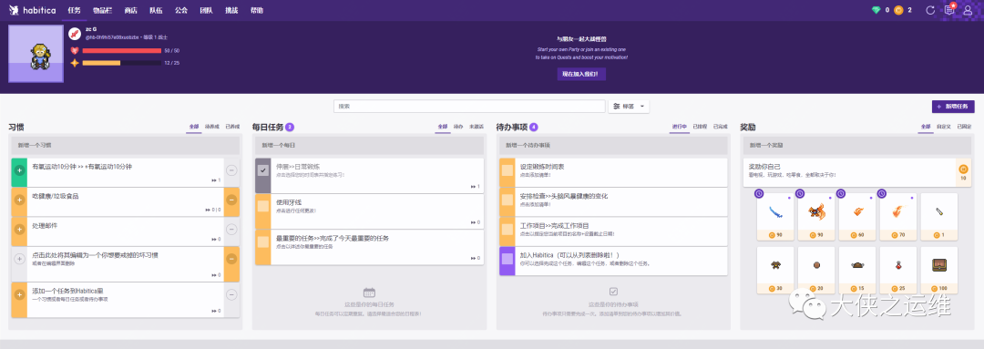 Habitica是一个开源的习惯养成程序,它将你的生活视为角色扮演游戏。在成功时升级,失败时失去HP,赚钱购买武器和护甲。还有手机端版本