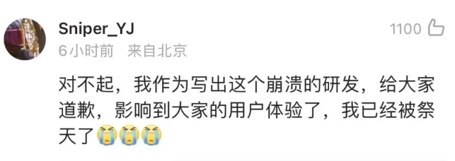 所以开除一个人这种做法并不是十分可取,有网友询问是否真实被开除,该人员早上回应称:必然不会,正在紧急修复bug。