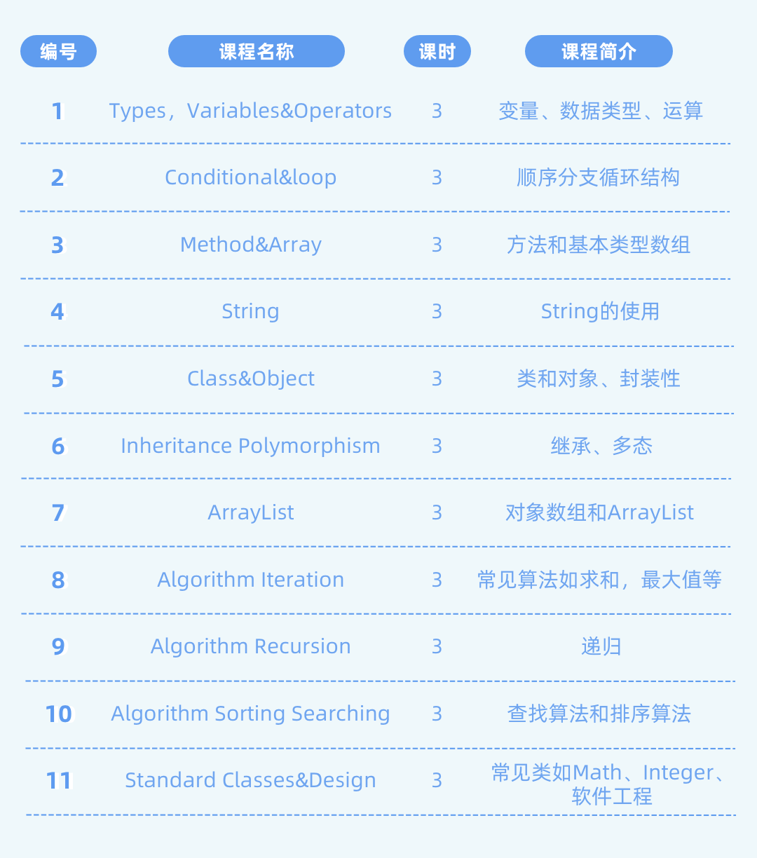 AP计算机科学A 以Java语言为基础,学习Java编程语言,学习面向对象程序设计的思想,以及简单的数据结构和算法。2021年考纲和2020年考纲保持一致,考查内容包含10个部分:
