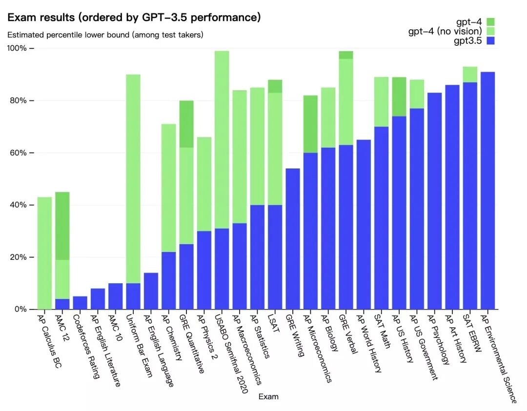 该模型在各种专业和学术基准上表现出“人类水平”。此前,OpenAI 研究人员也做过测试,称,如果 GPT-4 是一个仅凭应试能力来判断的人,它可以进入法学院,而且很可能也能进入许多大学。