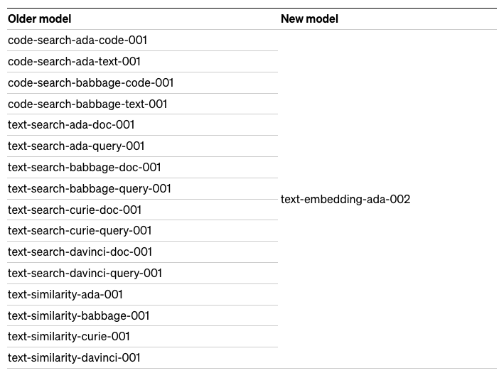 除了淘汰一些 Completions API 旧模型之外,OpenAI 表示,旧的嵌入模型(如 text-search-davinci-doc-001)的用户也需要在 2024 年 1 月 4 日前迁移到 text-embedding-ada-002。