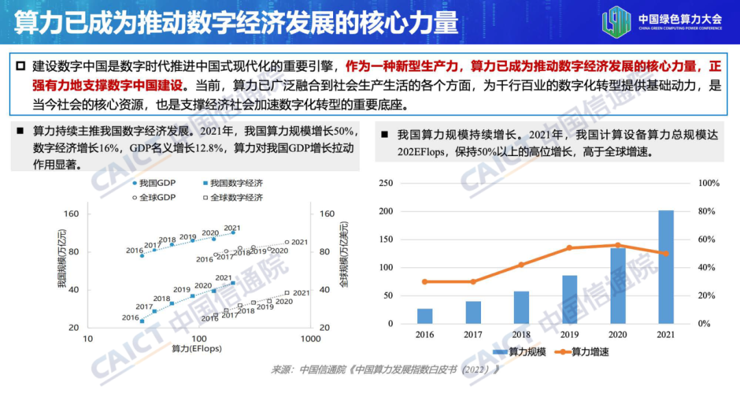 建设数字中国是数字时代推进中国式现代化的重要引擎,作为一种新型生产力,算力已成为推动数字经济发展的核心力量,正强有力地支撑数字中国建设。享受算力带来高价值驱动力的同时,也不能忽视算力背后的高能耗问题。在碳达峰碳中和目标引领下,大力推动算力绿色化发展,实现绿色算力升级,是我国建设数字基础设施和展现节能减碳大国担当的重要命题。