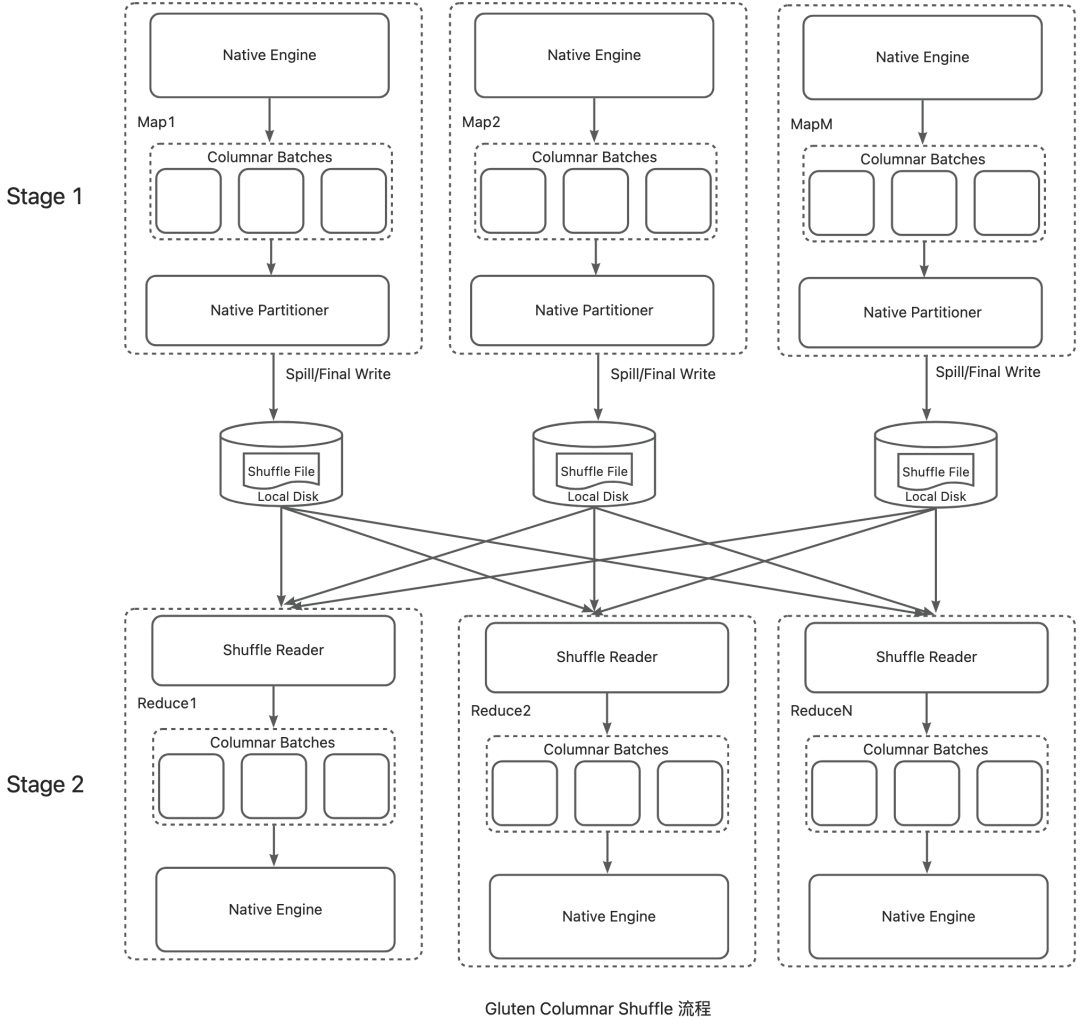 Gluten Columnar Shuffle 做了诸多优化,但由于其沿用了 Spark 的本地 Shuffle 框架,故存在以下主要限制。