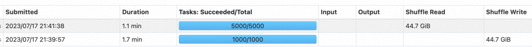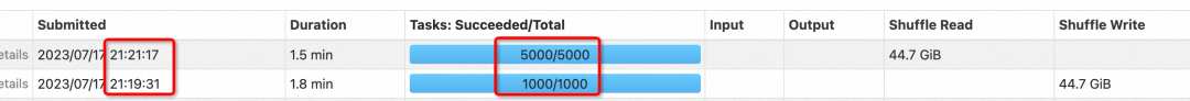 spark.sparkContext.parallelize(1 to 8000, 8000).flatMap( _ => (1 to 15000000).iterator.map(num => num)).repartition(8000).countspark.sparkContext.parallelize(1 to 8000, 8000).flatMap( _ => (1 to 30000000).iterator.map(num => num)).repartition(8000).countspark.sparkContext.parallelize(1 to 8000, 8000).flatMap( _ => (1 to 45000000).iterator.map(num => num)).repartition(8000).count