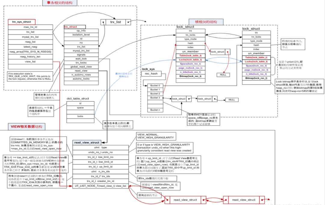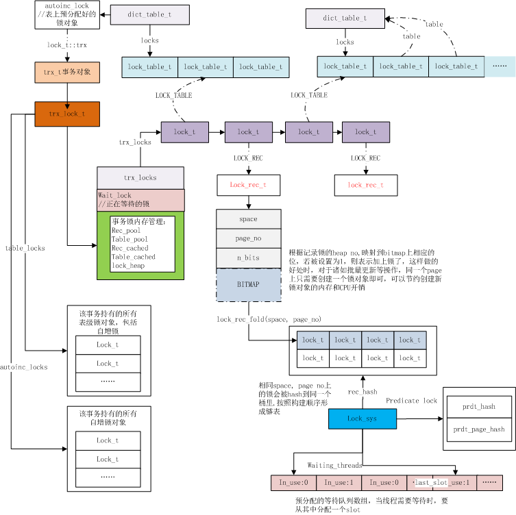 - 事务锁子系统:包含所有锁的相关信息,系统中所有锁的总体信息及各个锁对象的数据结构,如:行锁对象及所有行锁对象的hash表等。