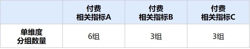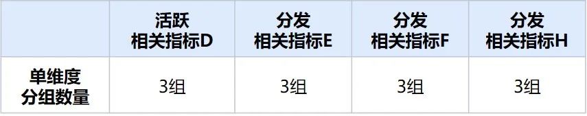 中心策略AB实验时业务核心关注的付费指标中受用户不均匀影响的主要是活跃用户arpu,故针对该指标的定义,选取部分中间变量作为用户分层的依据,然后根据这些指标在中心活跃用户大盘中的表现,先按照单一指标分组,然后多个指标交叉组合形成最终的分层方案。