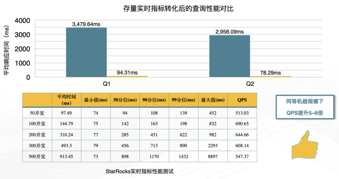 下图是迁移后查询性能对比结果,平均响应时间大幅下降。通过相同集群规模的并发压测,QPS 提升了 5 倍以上。