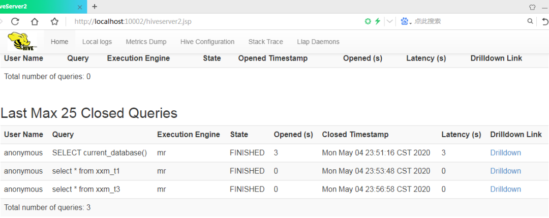 hiveServer2的UI界面可以查看到已经被查询过的sql: