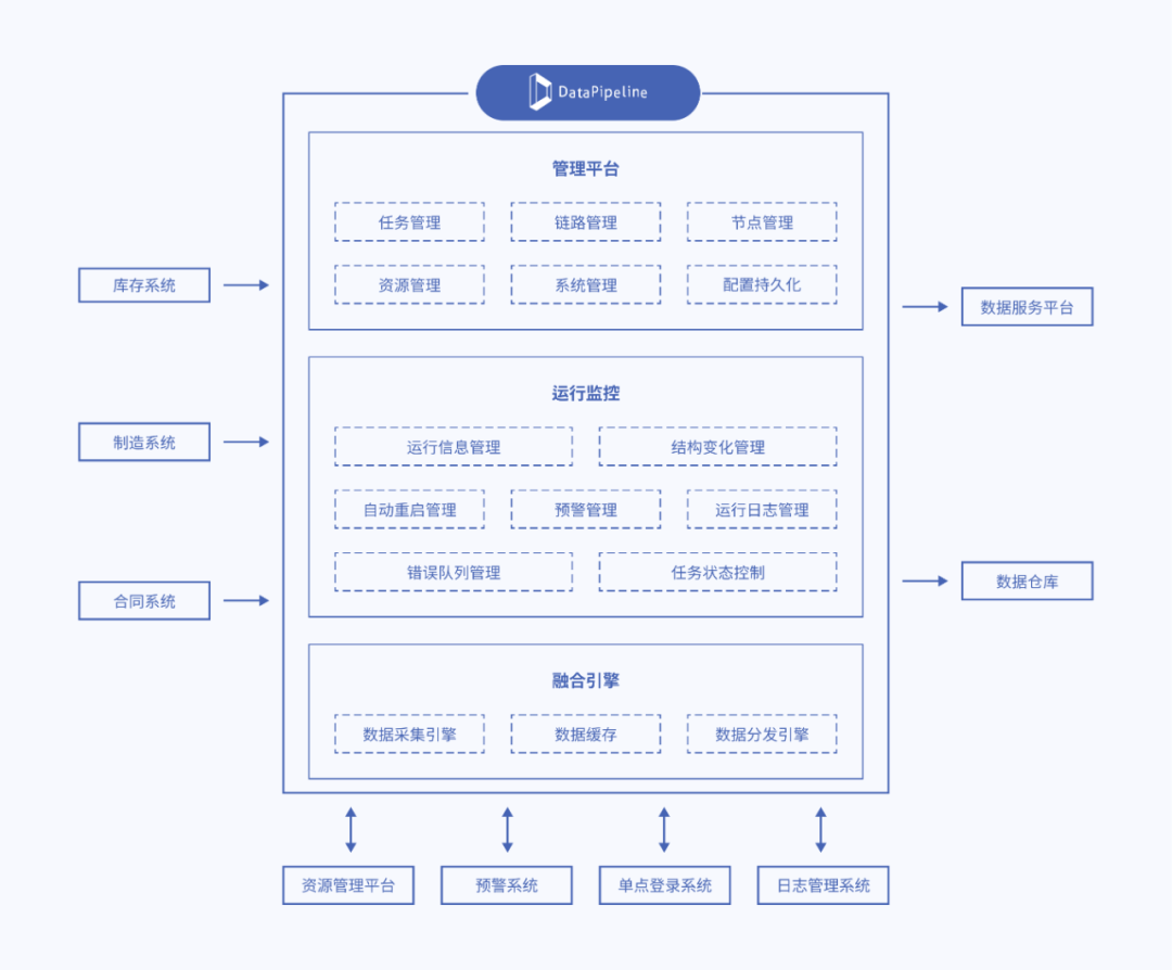 DataPipeline打通了该客户多样的数据库管理技术,使用统一的系统平台管理并实现实时数据流转,包括用户权限、数据时效管理和安全管控等方面功能,既可以实时获取源端数据变化,还可以支持数据及时消费,保证数据实时传输。用户可以在链路上定义字段类型映射、限速、告警等策略,并应用到任务层面,从而实现层级化的精细管理。同时,平台具备统一的可视化管理页面,为数据工程师、运维人员提供直观的数据任务地图,随时可以洞悉数据的最新动态,极大提升运维工作效率和效益,高效释放数据价值。