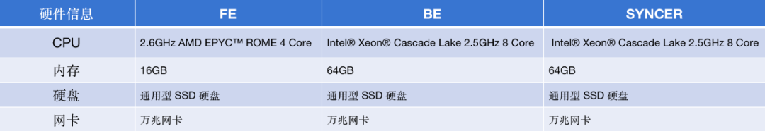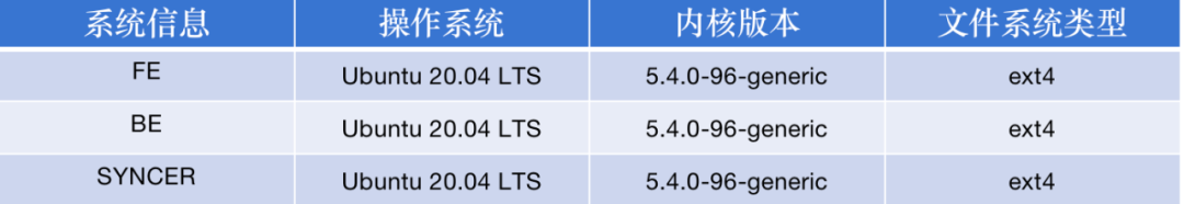 源集群和目标集群均为 1FE 1BE 的集群,系统信息与硬件信息如下: