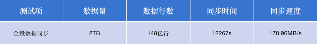 为了测试 CCR 的数据同步效率,我们也进行了基于全量数据的导入测试。在全量数据的导入过程中,2TB 数据仅需不到 4 小时即可同步完成,单节点写入速度超过 170MB 每秒,具体结果见下方表格。随着集群规模的扩展,数据写入的效率呈线性提升的趋势。