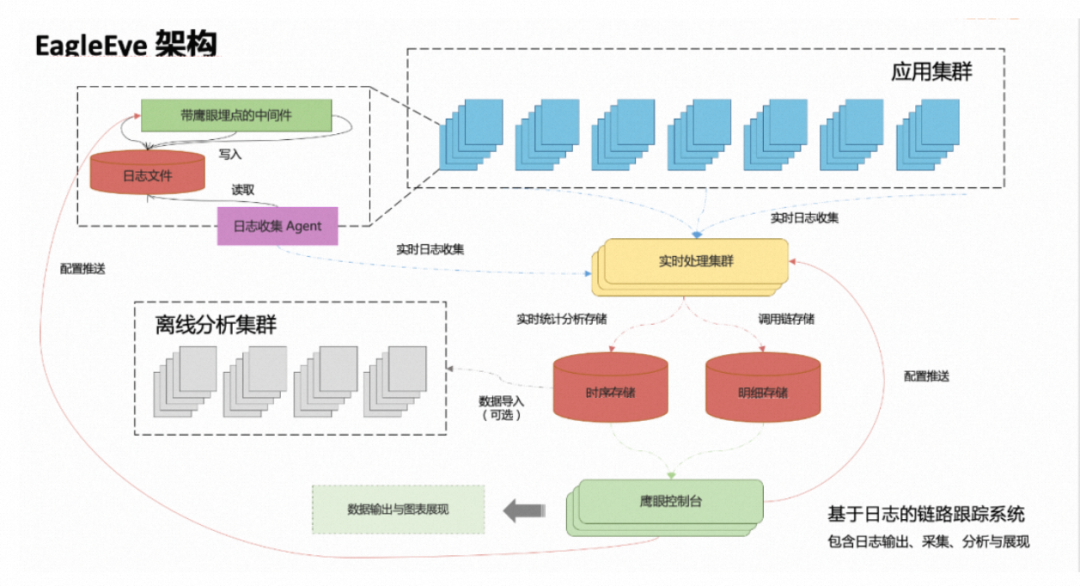 正是在这一背景下,EagleEye 应运而生。EagleEye 是一个以链路追踪技术为核心的监控系统,通过收集、存储、分析分布式系统中的调用事件数据,协助开发和运维人员进行故障诊断、容量预估、性能瓶颈定位以及调用链路梳理。2012 年,EagleEye 第一次发版,EagleEye 1.0 能够构建链路跟踪核心体系,提供调用链与离线报表服务。当时虽未出现可观测性一词,但业界已将其分解为三个更具体的方向展开研究:Metrics(指标)、Tracing(链路追踪)以及 Logging(日志)。这三大方向也是此后 OpenTelemetry 协议定义的可观测性三大支柱。最开始,EagleEye 主要关注 Tracing 领域,这也是业界比较早期的大规模 Tracing 实践。“EagleEye 解决了阿里当时微服务架构下的分析和诊断挑战,有很多阿里内部研发人员在应用它。”司徒放说道。2013 年上半年,EagleEye 打通了淘系所有常见中间件的调用数据,应用负责人能看到自己的系统在整个链路上的执行情况,为大促和单元化的容量规划、依赖分析提供了数据支撑,并具备了快速定位分布式系统故障的能力。EagleEye 的第一个重要发展契机是淘宝的双十一大促,这是 EagleEye 的首次大规模应用。也是在这时,EagleEye 上线了实时链路大盘,为全链路压测提供压测透传和链路来源流量分析。当时,为了提前做好系统容量的准备,阿里对线上系统进行了全链路压测,而全链路压测的底层其实是与 EagleEye 的 Tracing 能力紧密相关的。于是,EagleEye 从 Tracing 领域切入到 Metrics 和 Logging 领域,通过 Traces 去做流量级别的、精准的 Metrics 数据统计,用来分析上下游应用的依赖关系,提供一个全局流量拓扑。同时抽象了一个通用的实时日志处理系统,用来做通用的日志采集、计算、存储方案,进一步提升问题排查效率。EagleEye 1.0 之后,团队陆续发布了 2.0、3.0、4.0 版本,围绕链路跟踪的核心能力, EagleEye 逐步构建了集监控、诊断、优化于一体的综合性服务平台:提供多维查询与实时报表以及数据分析能力;基于内存统计,提供精准实时报表与系统监控服务;基于链路追踪,提供单机诊断与业务定制化服务。