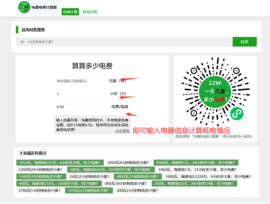 方式二、通过在线的电费计算器工具来进行计算电费及耗电情况
