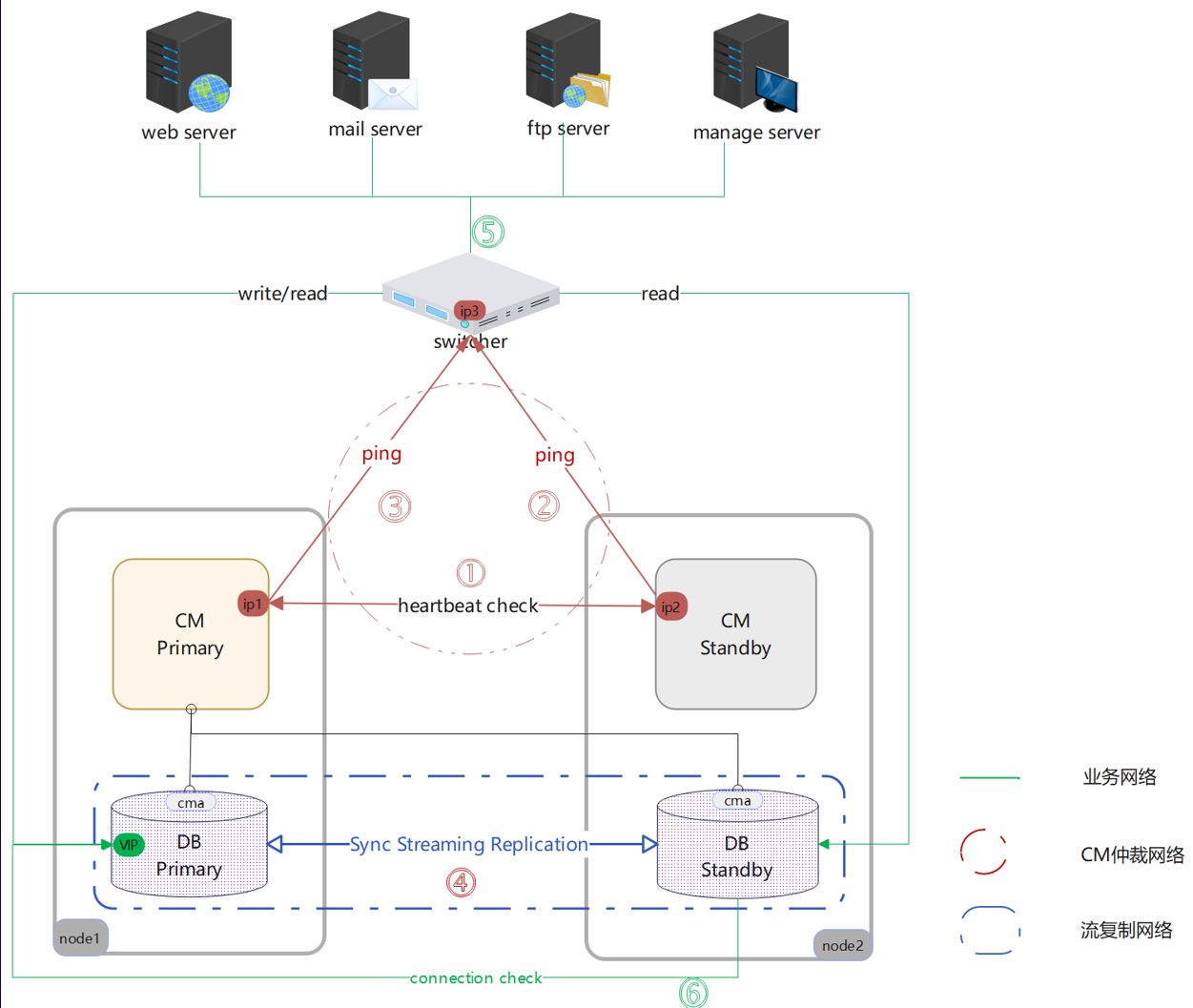 2.1.1.2 数据库集群高可用 – 参考流复制网络和业务网络VIP