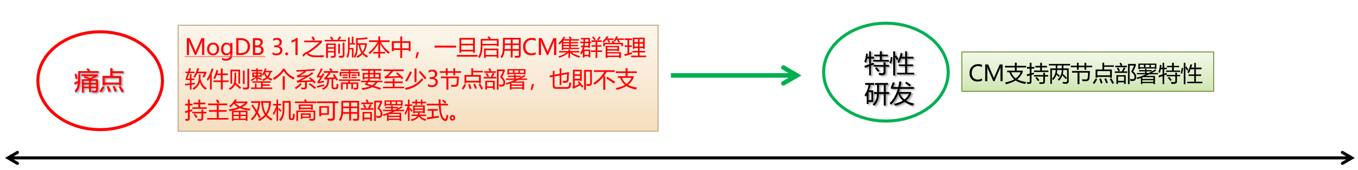 MogDB产品针对CM支持两节点部署特性一共提供了两个版本:MogDB V3.1,MogDB V5.0。需要注意的是,前述两个版本功能上无差异,仅在设计细节差异,且MogDB5.0版本的实现属于恩墨贡献到OG社区5.0版本的回合版本。