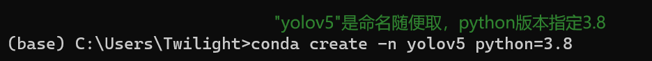 conda create -n yolov5 python=3.8这里面就是要安装的包,输入“y”回车: