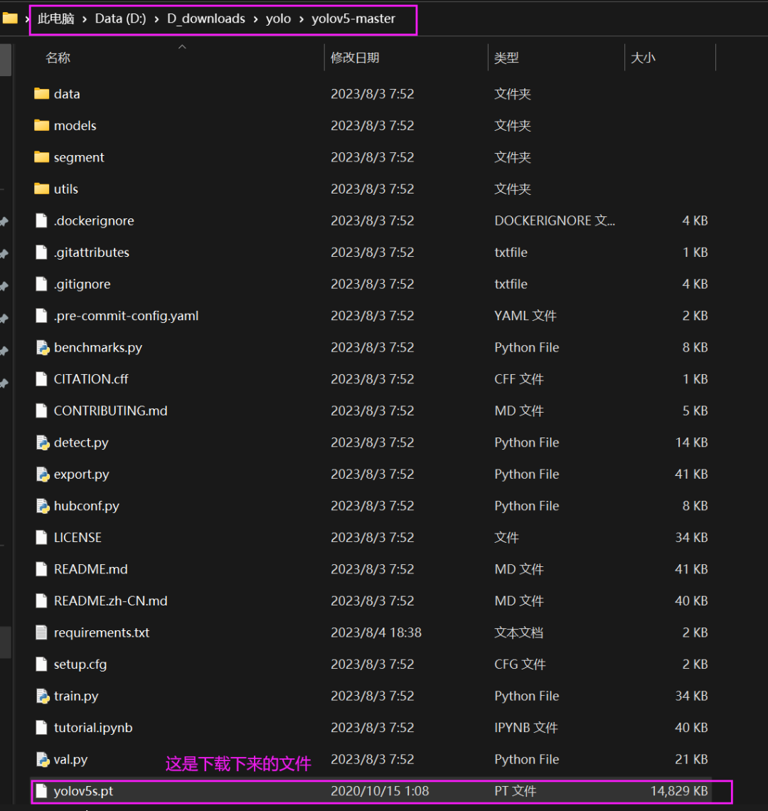 这个yolov5项目呢需要一个模型,这个模型是在运行过程自动会下载下来,但是由于速度太慢,所以可以提前去下载下来放入项目中: