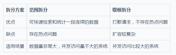下面总结了范围拆分和取模拆分的优缺点及其适用场景: