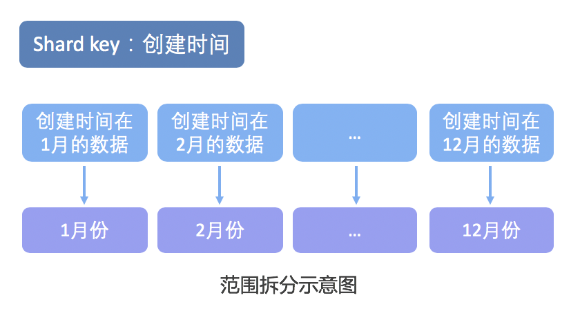 流水型数据,建议取时间字段为Shard key,根据数据量大小决定是按年、按月还是按日拆分。