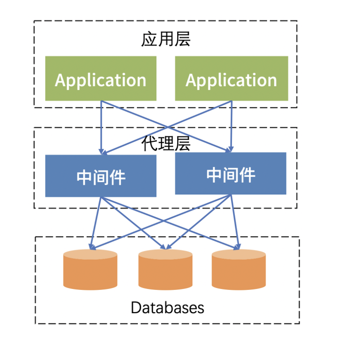 过独立的中间件来统一管理所有数据源和数据分片整合,后端数据库集群对应用程序透明,需要独立部署和运维代理组件。