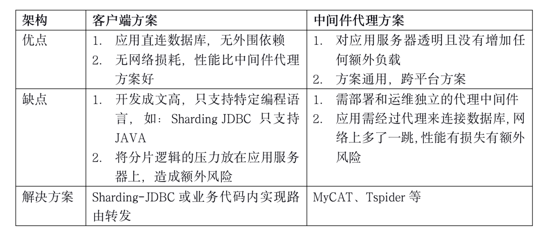 基于客户端的分片方案还有一个很大的缺点 -- 只支持特定编程语言。比如 Sharding JDBC 仅支持 java 语言,所以使用其他语言的开发,还是比较偏向于使用对应用透明的中间件代理方案。