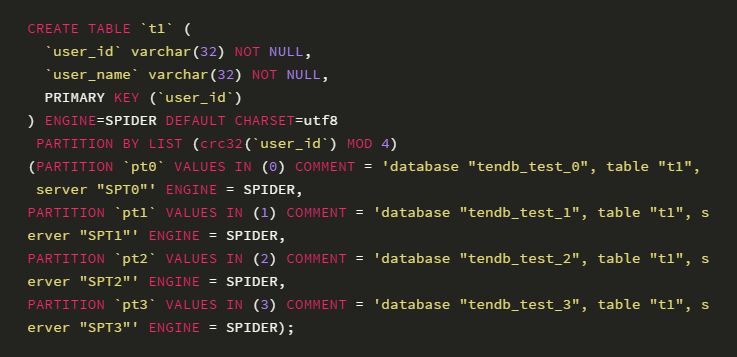 TSpider是基于MySQL的分区表功能开发,但不同的是,它将每个分区的数据拆分存储到了远端MySQL实例中。具体配置方法如下: