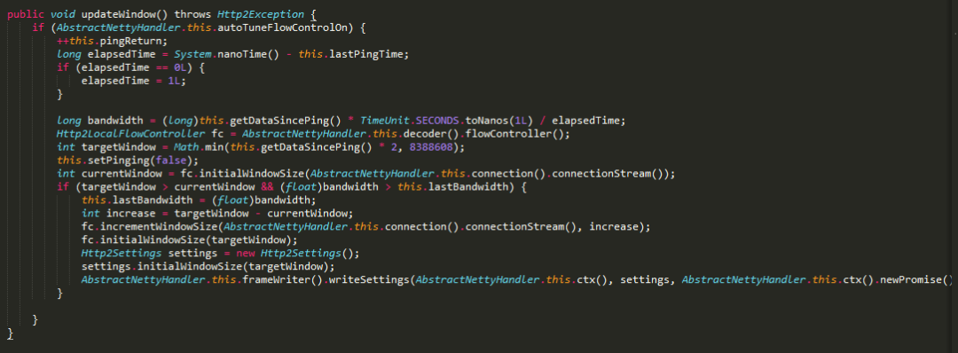 gRPC服务端收到Body消息后会记录下自上一次发送Ping以后的消息长度,当收到Ping以后会触发updateWindow方法更新窗口大小。这是一个逐渐增加窗口过程。