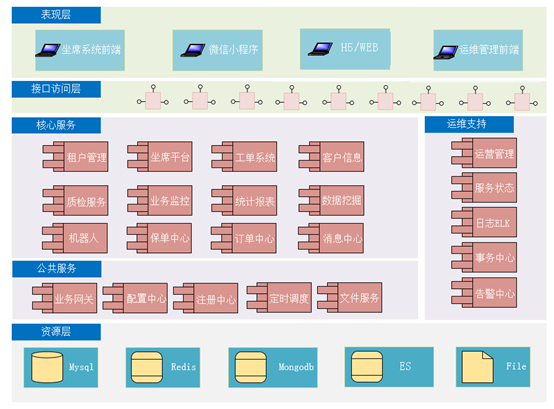 微保客服云平台基于SaaS模式,采用微服务的架构设计实现,主要支持2B的保险行业客服服务。系统包含了业务网关、坐席平台等十几个核心系统,并结合公共服务及运维服务,共同构建了完善的客服系统平台,下面就谈一谈平台搭建过程中的一些选型和实践。