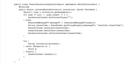 微保客服平台是在Springboot框架下实现的微服务,我们通过AOP拦截GRPC请求,读取租户标识,结合ThreadLocal实现自动的数据源切换。这样一线开发人员在实现微服务的API时,基本可以不关心实际租户的数据库,只关心实际的业务场景和业务逻辑。
