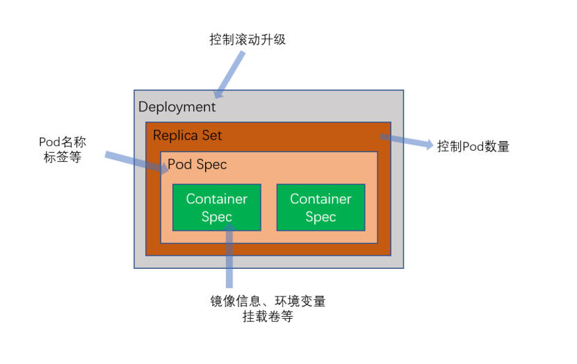Deployment 是k8s中最常用的用于部署无状态服务的方式,它是一种声明式的资源控制器,控制器能管理集群中最小调度单元——pod,pod又是实际运行在宿主机上的真实容器的抽象组合,正是这种分层的抽象管理关系使k8s具备了管理底层容器的能力。