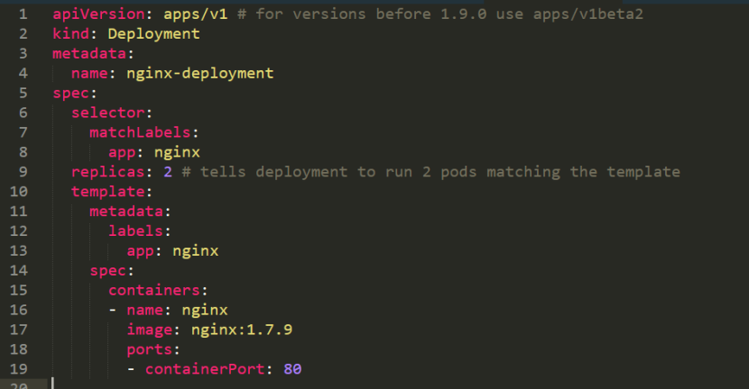 通常一个应用的编排文件由以下几部分组成:版本信息、元信息、模板信息。版本信息指明了当前使用过的Deployment是什么版本,元信息记录了当前应用的名字以及所在namespace,模板信息提供了创建容器及pod所需的关键参数。