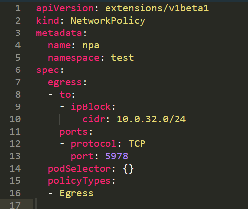 上面的实例文件表示对test这个namespace生效,对10.0.32.0/24这个网段的5978端口开白,也就是说test namespace下面的Pod只能访问10.0.32.0/24这个网段的5978端口,其余的出口网络地址都不是不可达的。这种网络管理方式虽然有效但太过于粗糙了,不能满足服务精细化治理的要求,还需要我们继续探索新的管理手段与方法。