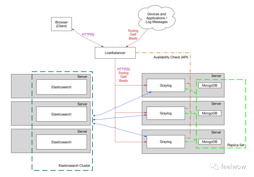 mongodb 存放 gralog 控制台上的配置信息,以及 graylog 集群状态信息,还有一些元信息 es 存放日志数据,以及检索数据等 graylog 相当于一个中转的角色
