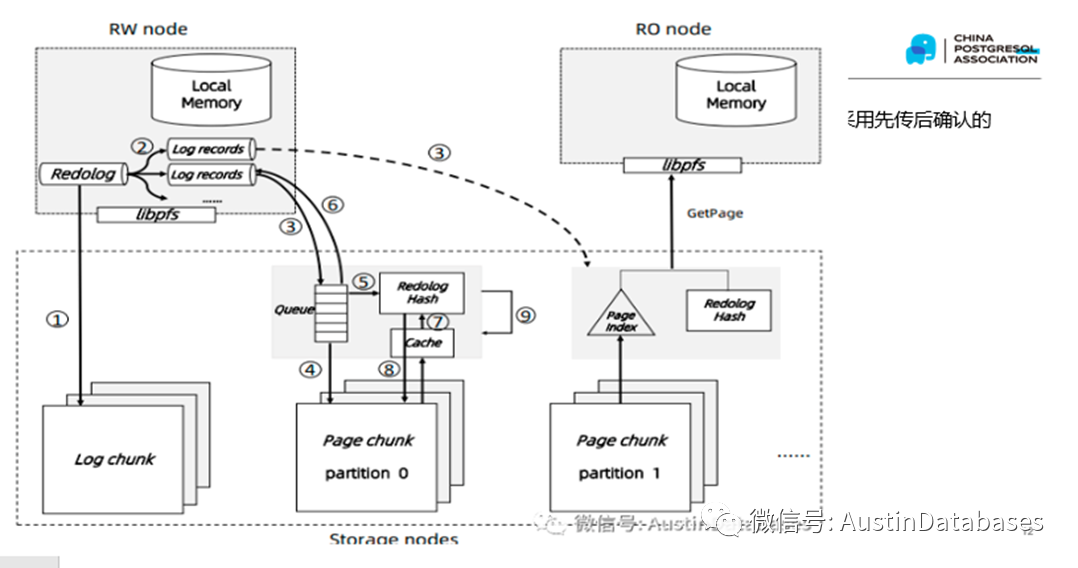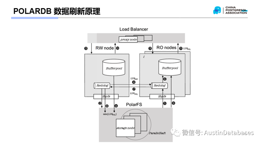 说到存储,POALRDB本身对于存储采用了非常规的方式,采用了自研的POLARDBFS 作为存储对外的服务对象,这里POLARDBFS 本身是具有副本的,也就是在存储硬件和数据存储格式上,完全支持数据不丢失和数据冗余存储,实际上他是1写三采用了 parallel raft 并行RAFT的协议,数据库本身是不负责数据高可用的,高可用在数据存储池进行。从上图看,POALRDB的REDO LOG 本身并不直接通过存储来实现同步,而是在内存中进行了进行了REDO状态的同步,基于所有节点共享一个存储设备的基础上,数据的同步基本上抛弃了通过缓慢网络的方式进行节点之间信息传递的方式。