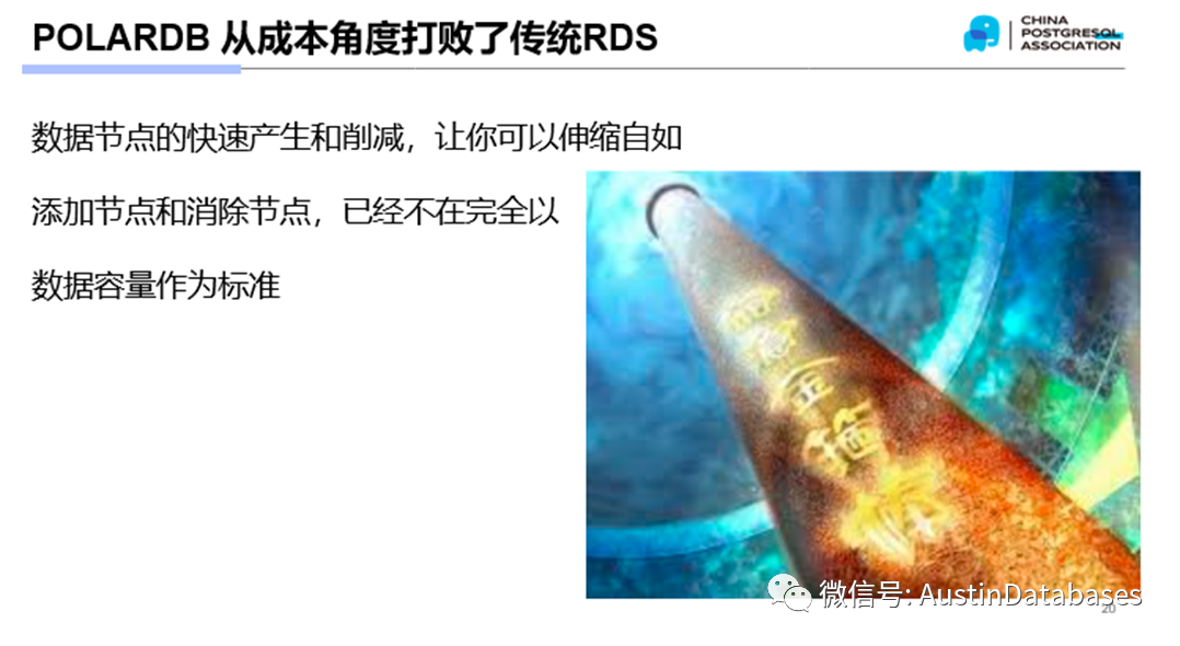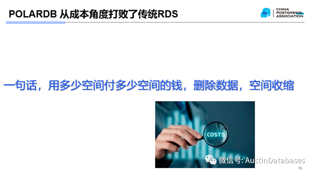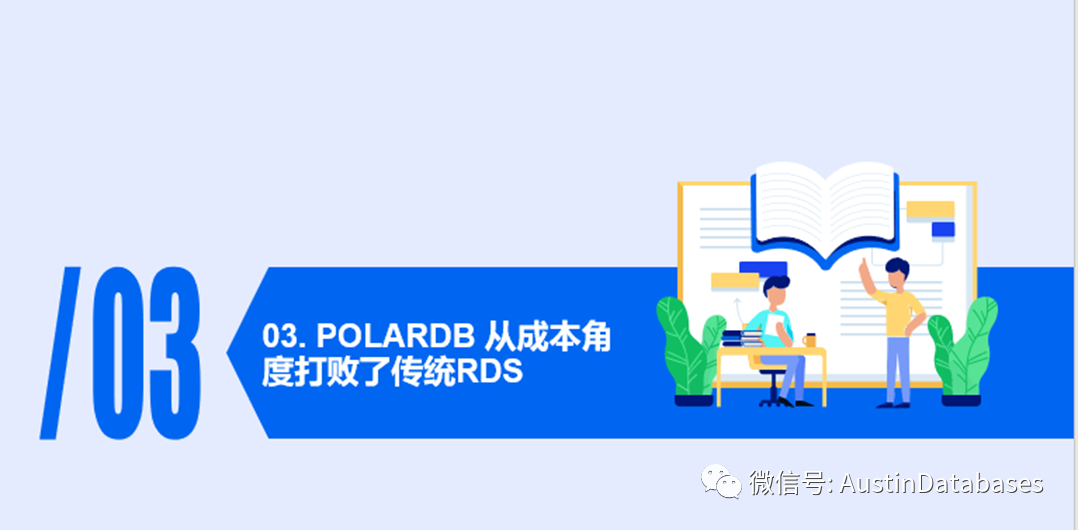 那么我们在通过POALRDB打败了开发人员使用传统数据库的习惯后,让其依赖了POALRDB 的舒适性功能,剩下的POLARDB 要打败的就是老板 BOSS。因为老板是不会关心你什么你,他什么他, 什么ORACLE , PG ,MYSQL ,那个成本最低,我要那个,技术问题你们解决。