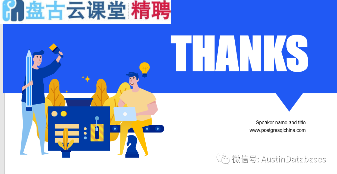 大家好,非常感谢今天进入直播间的老师们,同学们,同时也非常感谢两个平台给与此次分享的支持,盘古云课堂和POSTGRESQL 分会。