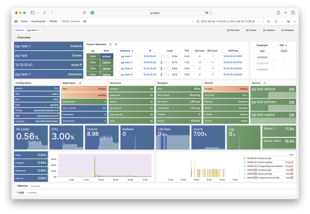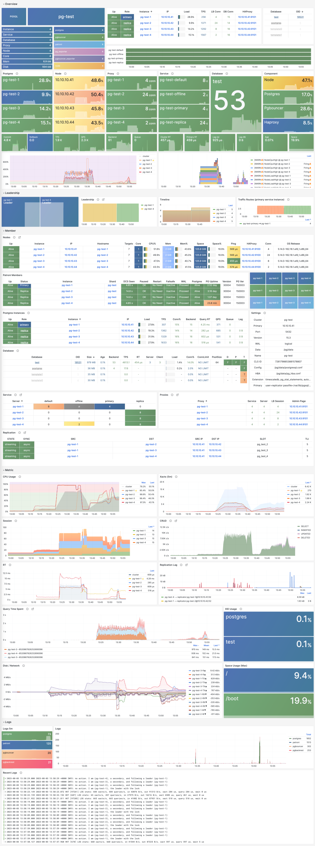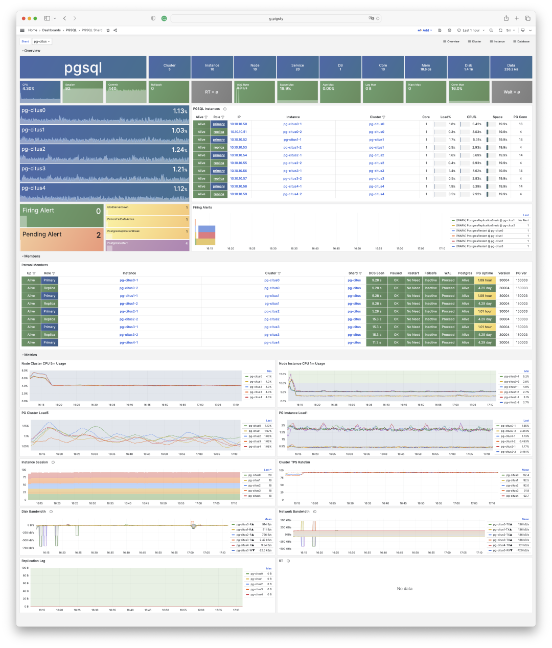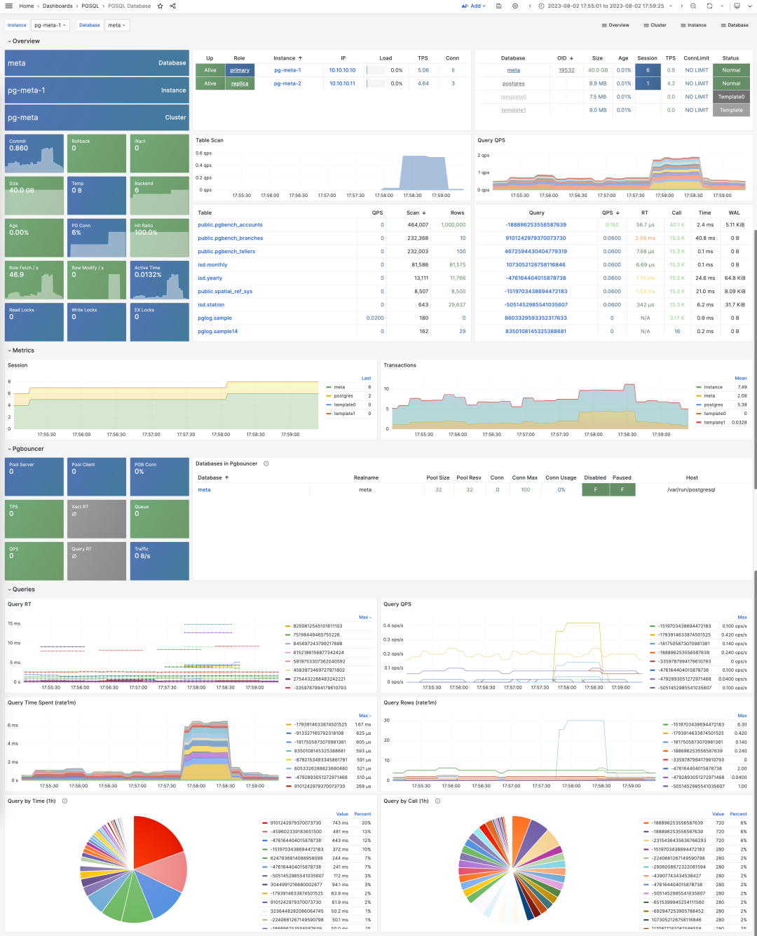 Pigsty v2.2 中,对监控面板进行了彻底的重制,充分利用 Grafana v10 的新特性,为用户带来耳目一新的可视化体验。