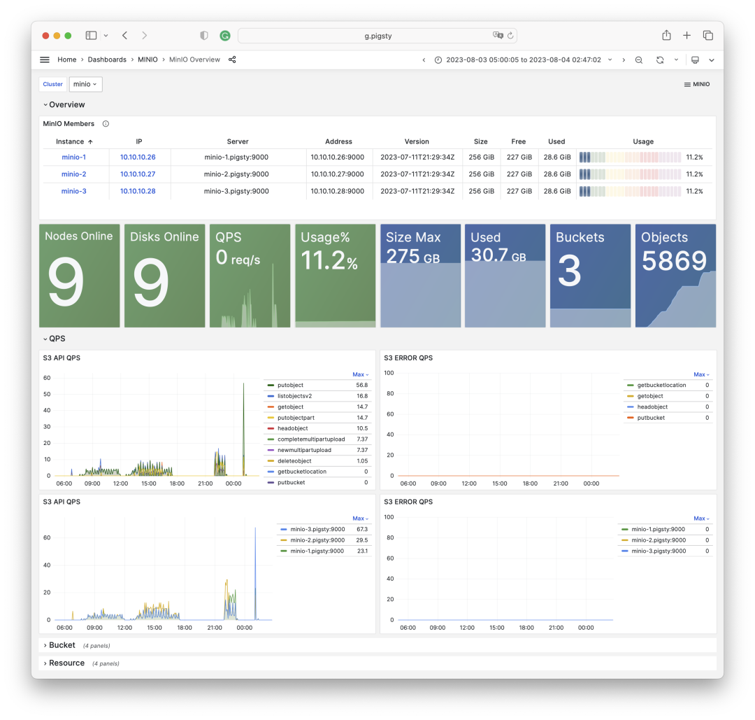Node Instance 的指标部分基本保持不变,但首屏概览部分进行了重制。MinIO Overview 亦然。
