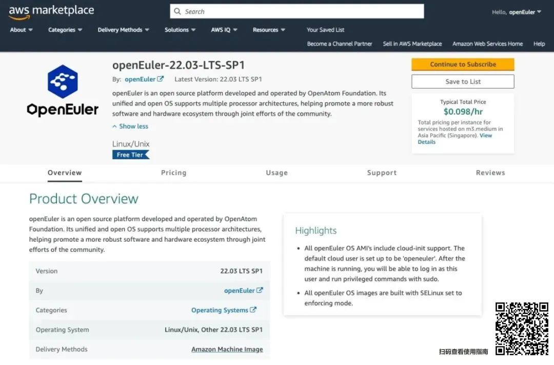 近日,openEuler 22.03 LTS镜像正式登录AWS Marketplace,目前在亚太及欧洲15个Region开放使用,后续将开放更多版本和区域。openEuler 22.03 LTS AMI(Amazon Machine Images)由openEuler社区提供支持。